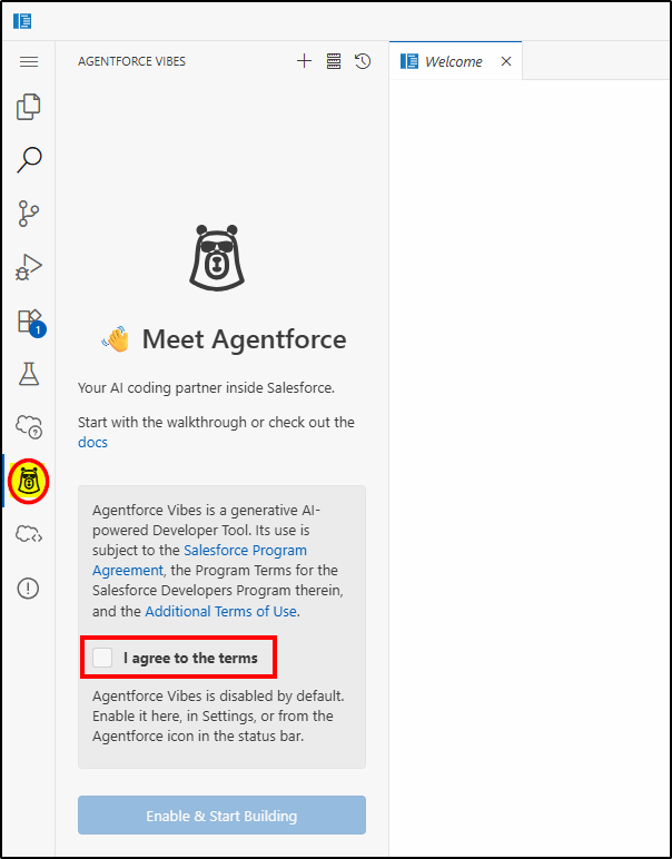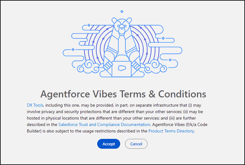 I accepted the Terms and Conditions – knowing this was relatively new and could still be a bit buggy. I was just experimenting anyway and I was doing it safely in a developer org completely isolated from any “real” Salesforce environment.
