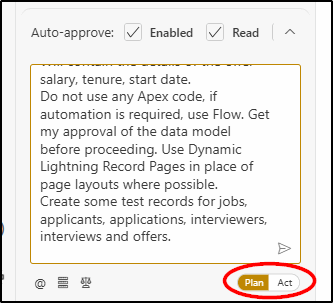 First, I have to say I was impressed by the Plan/Act stage. This made logical sense to do the initial design first, review the design, and confirm it meets requirements before proceeding. If I had taken 24 hours to do this review, I would have had a new set of tokens to do the build and deploy, and possibly not run into the issues I had encountered.