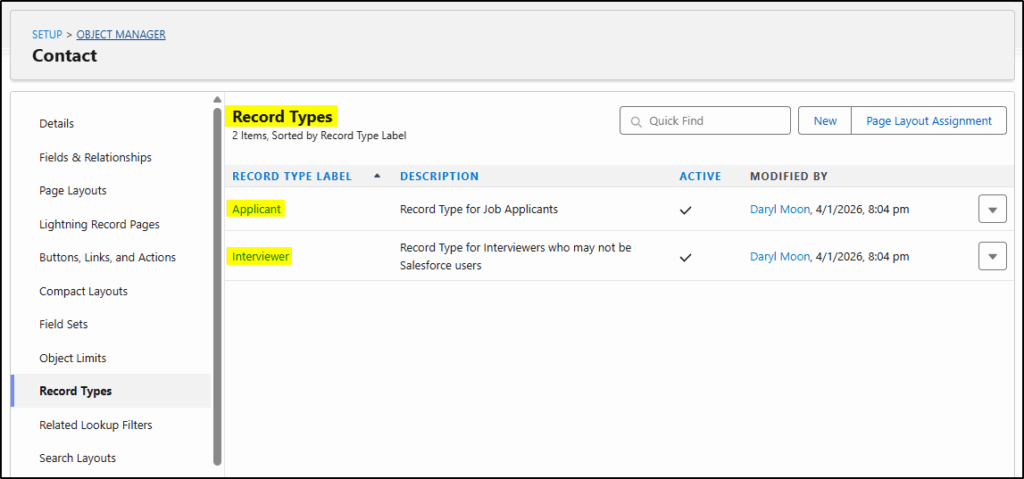 While I did specify to use a record type for contacts for the job applicant, Agentforce decided another was required for the interview panel members.