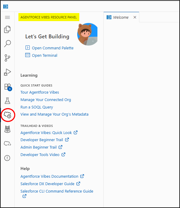 When all the extensions finished installing, I chose the resource panel icon (cloud) because it looked interesting.