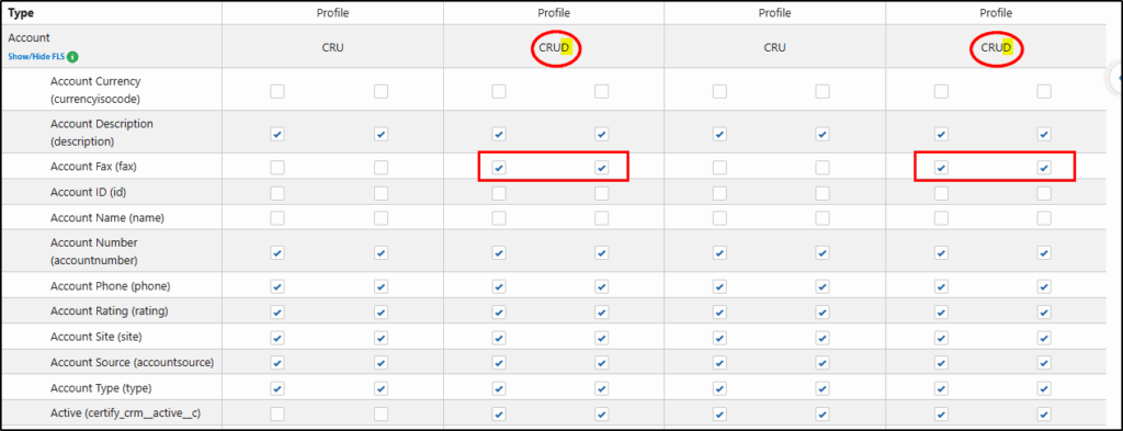These two profiles also have Field Level Security access to the Account Fax field, which is redundant now and could be removed.