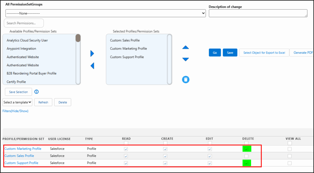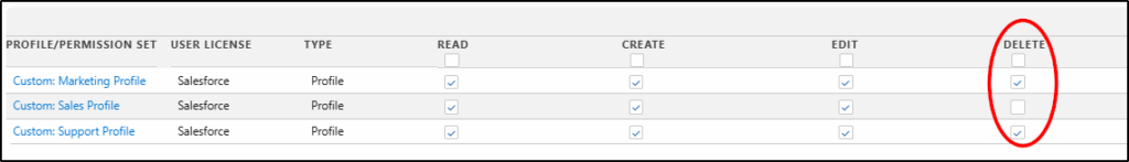 In this example, we will identify which custom profiles have Delete access for Accounts and remove their access. Then we discover they really did need that access, and we will demonstrate how to restore that access.