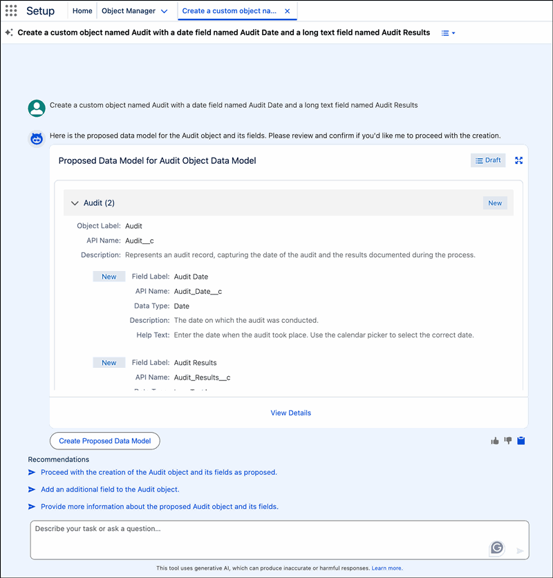 Of course, no new Salesforce release could exclude the inevitable appearance of AI. To help busy administrators navigate and configure Salesforce features, Agentforce intelligence is being added to the setup experience. Admins can issue commands or ask questions by using natural language in the chat window. The agent makes activities like creating objects and flows, managing user access, and troubleshooting formulas more intuitive and efficient, reducing navigation and clicks.
