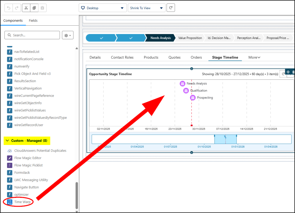 I’ve created a tab (Stage Timeline) and added the component under there.